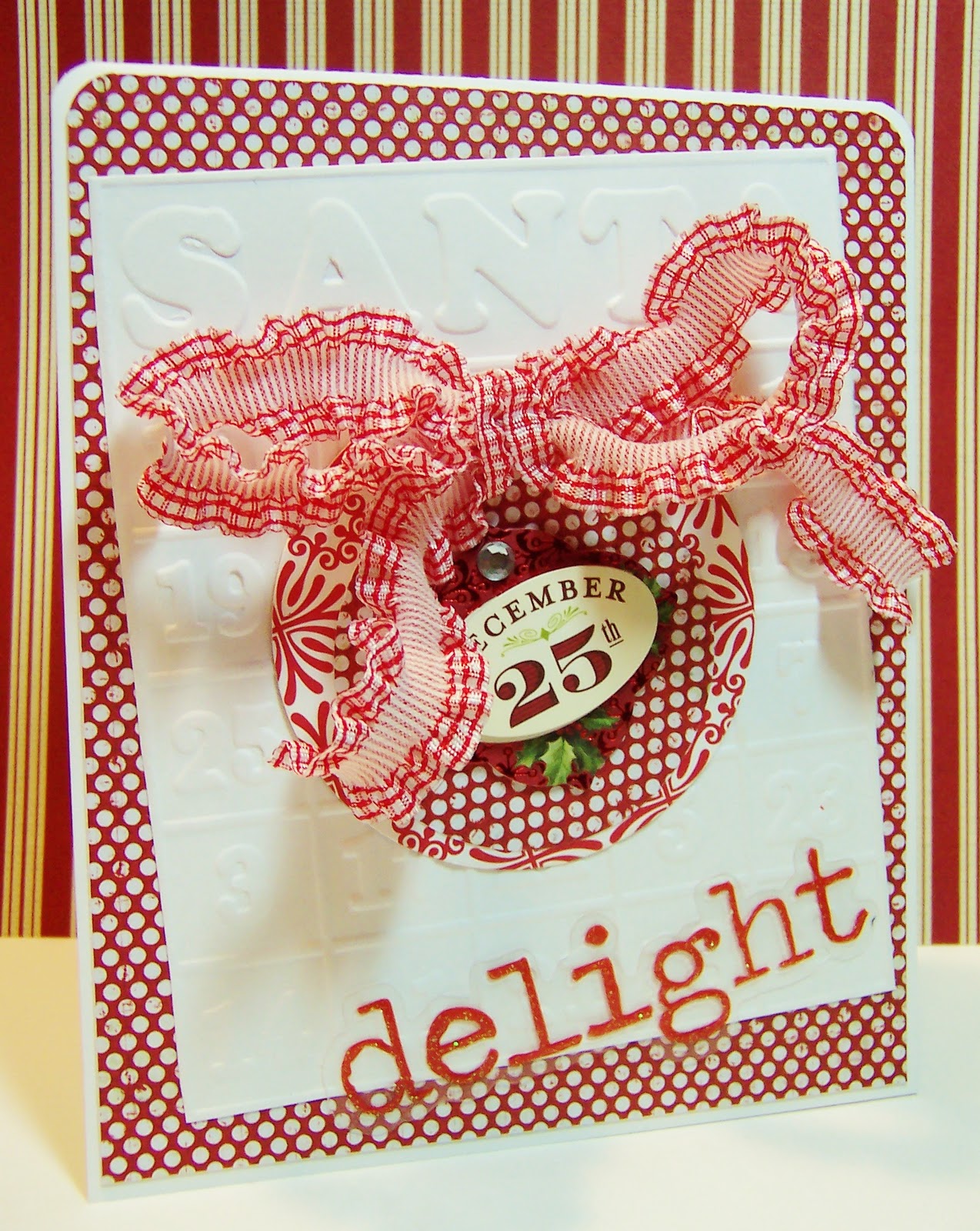 Very pretty card Julie! Love the gingham bow and all the embossed BG!